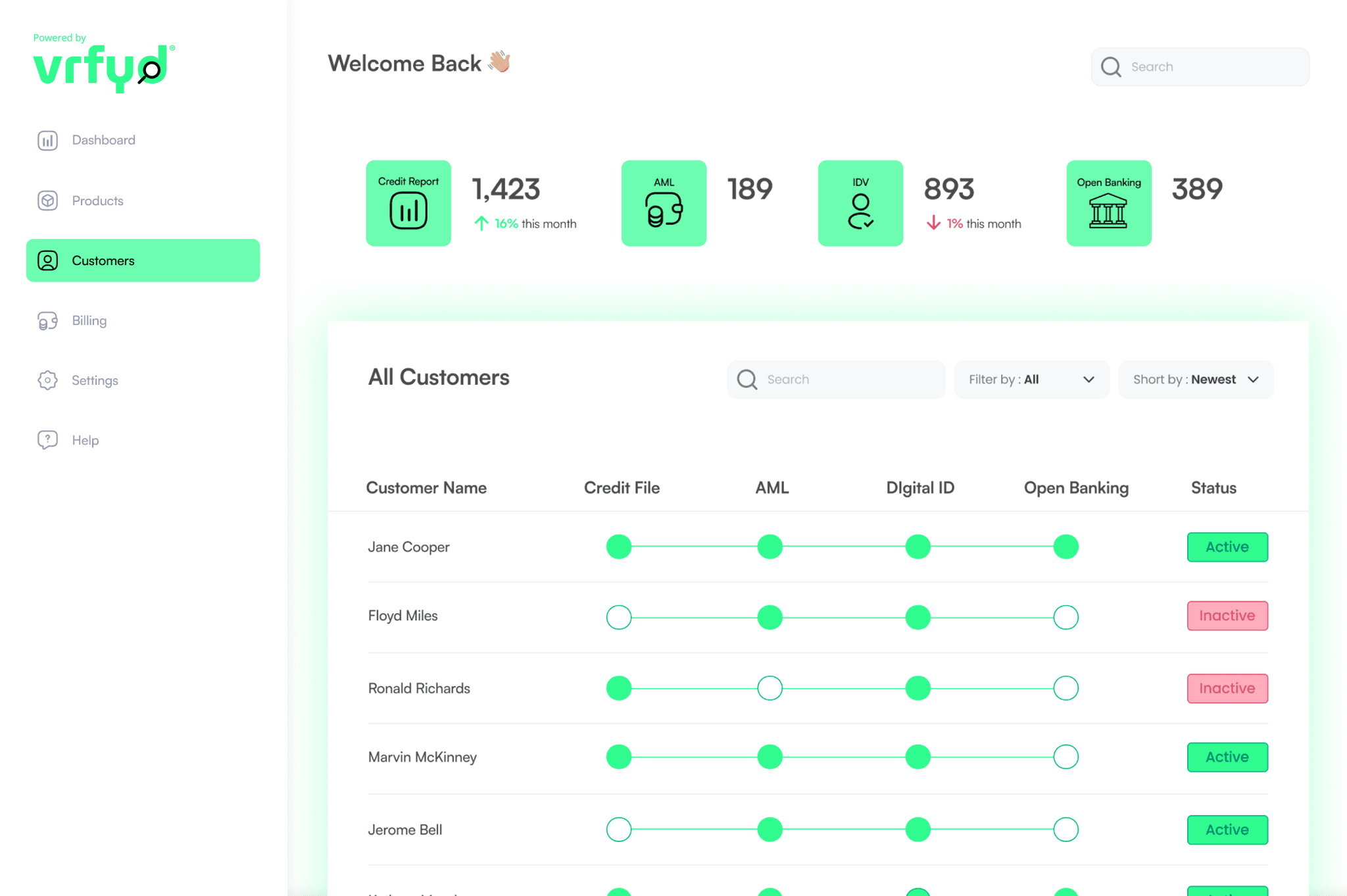 VRFYD checks against financial information with open banking, PEPs, Sanctions, Mortality and credit file.